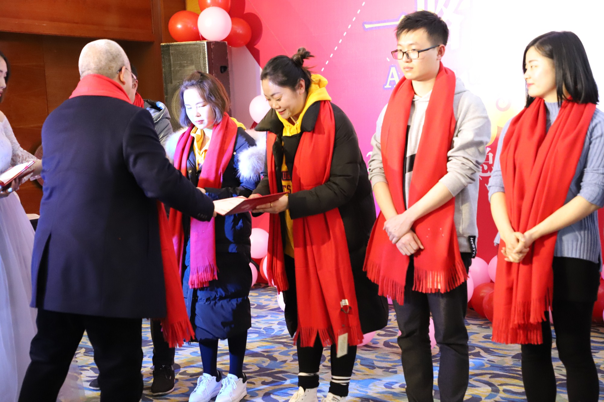 赵总为公司的优秀员工颁奖。